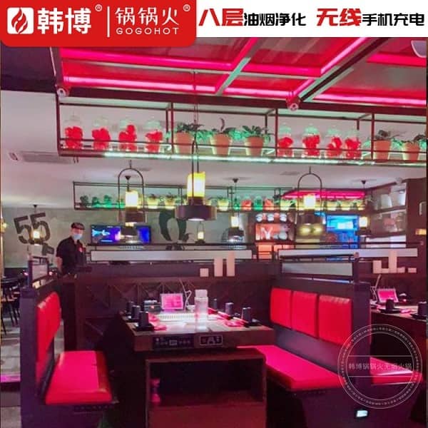 螺狮粉火锅、采用韩博锅锅火无烟火锅桌自净化下排烟