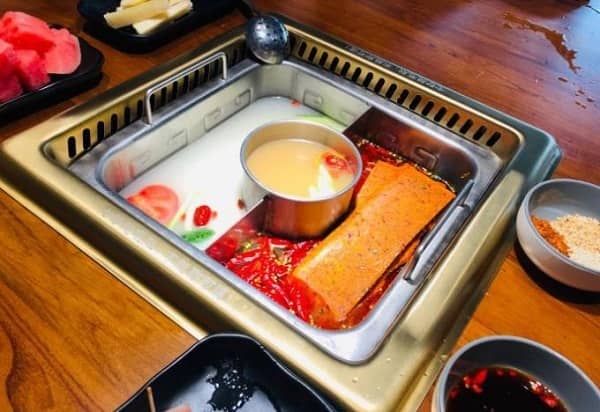 毛肚、过把瘾三味锅、采用韩博锅锅火无烟火锅桌
