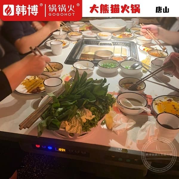 唐山是河北省辖地级市,位于河北省东部、华北平原东北部,南临渤海,北依燕山,毗邻京津。听到唐山我们一般人想到的都是地震,而唐山万达地处唐山市的核心地带,位于路南区新华道南侧,抗震纪念碑广场东侧,所以人流量是很高的,熊猫火锅处在万达广场,在商圈内大渝火锅、海底捞等大牌云集的环境下,熊猫火锅能脱颖而出,可见火锅店也有他吸引人的地方,而这些大品牌也都有用到无烟火锅桌,可见它的重要性。