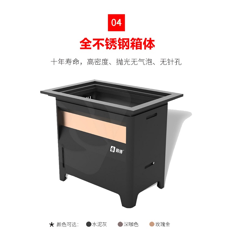 可定制范围:智能化触屏板、配套火锅电磁炉、油烟净化装置、抽风组件、全不锈钢箱体、USB充电插座、配套锅型和锅圈、火锅台面、框架、无线充电等等。